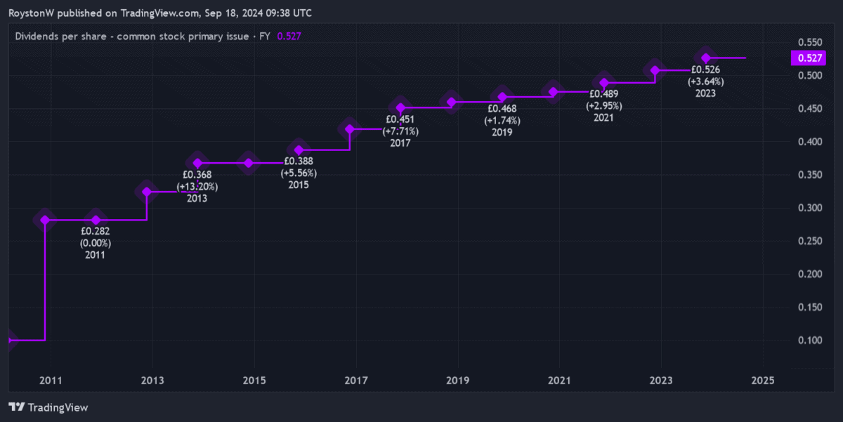 | Year | Dividend per share | Dividend growth | Dividend yield |