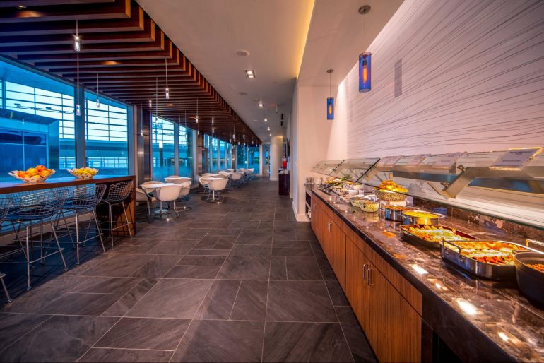The Centurion Lounge at Dallas-Fort Worth International Airport has a full buffet and access for certain American Express cardholders. (Photo courtesy of American Express)