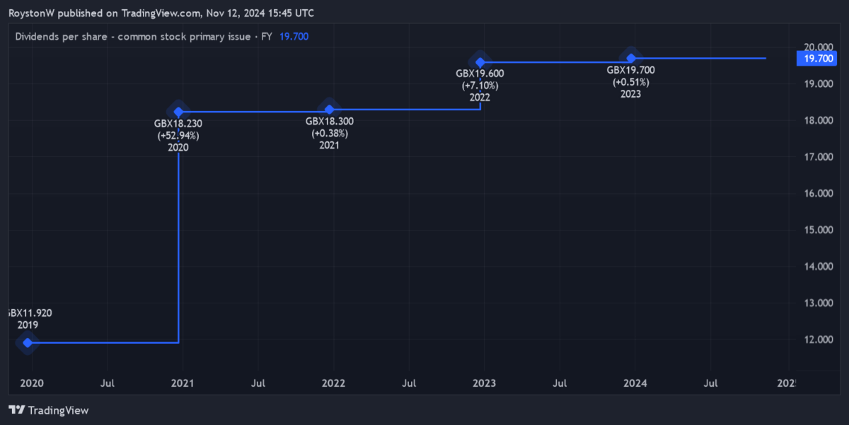 | Year | Dividend per share | Dividend growth | Dividend yield |