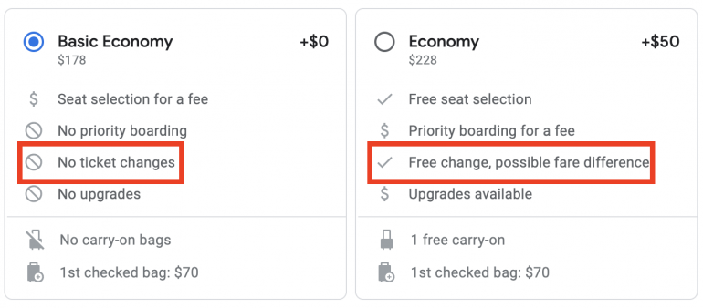 Basic economy fares have moved to even less flexibility. On most airlines, you can’t change them at all, and on some, you must pay a fee. This is in contrast to regular economy (or “main cabin”) fares, many of which now allow changes and cancellations with no fees at all.