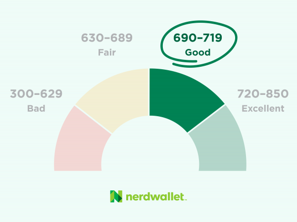A 695 credit score is at the low end of the “good” band (690-719) on a credit score range of 300 to 850. A misstep could easily send your score into the “fair” range.