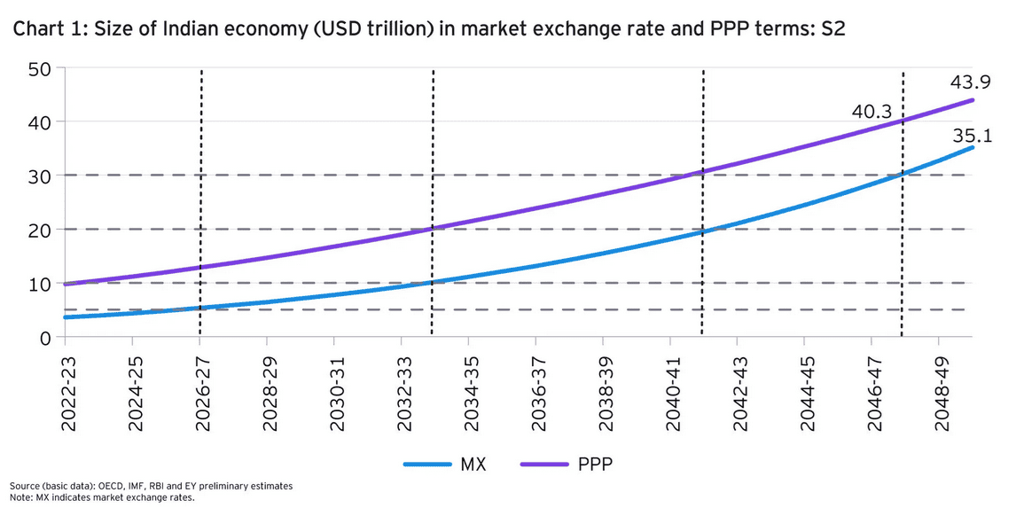 Investing in India isn’t just a short-term strategy though. EY Club expects the economy to grow to around $35trn by the late 2040s, in purchasing power parity (PPP) terms. That compares to below $5trn today.