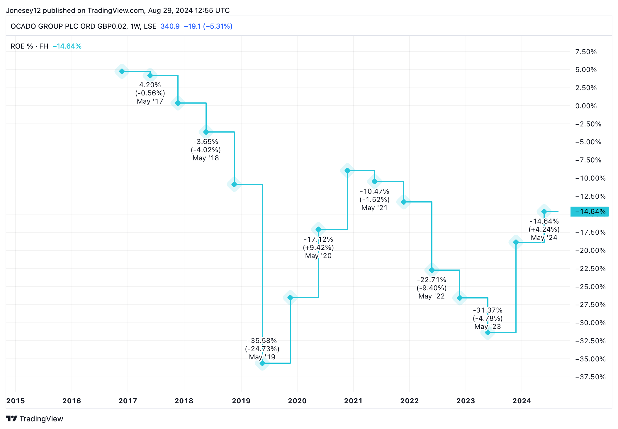 With 13 of the world’s biggest grocers on board, I still think there’s a terrific opportunity here. Judging by the group’s return on equity, it will remain a case of one step forward, two steps back, though. Let’s see what the charts say.