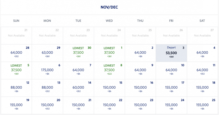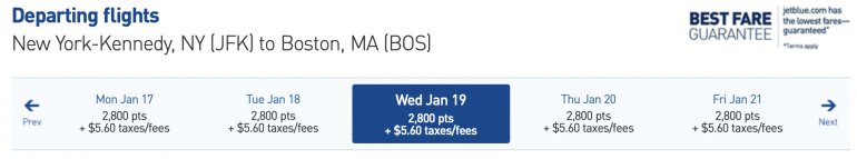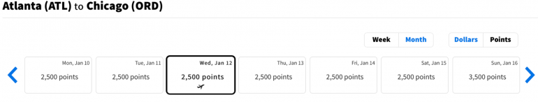 You can find flights for as little as 500 TrueBlue points, and although the airline doesn’t have a calendar function, it will show you five days worth of results at once.