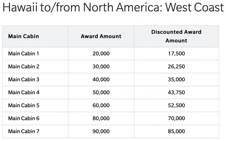 Hawaiian Airlines also uses a region-based award chart that varies with demand and fare class. One-way Hawaiian Airlines inter-island flights start at 7,500 HawaiianMiles, but you can also fly all the way to Korea or Australia starting at 40,000 miles.