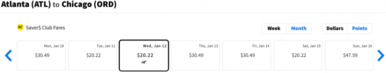 Southwest has a robust monthly fare calendar that makes it easy to spot low fares.