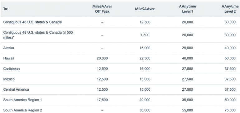 There are four levels of pricing that you’ll encounter when looking to redeem your AAdvantage miles: MileSAAver Off Peak, MileSAAver, AAnytime Level 1 and AAnytime Level 2. Each of these levels correspond to increasingly expensive redemption rates, with MileSAAver Off Peak flights costing the fewest miles.