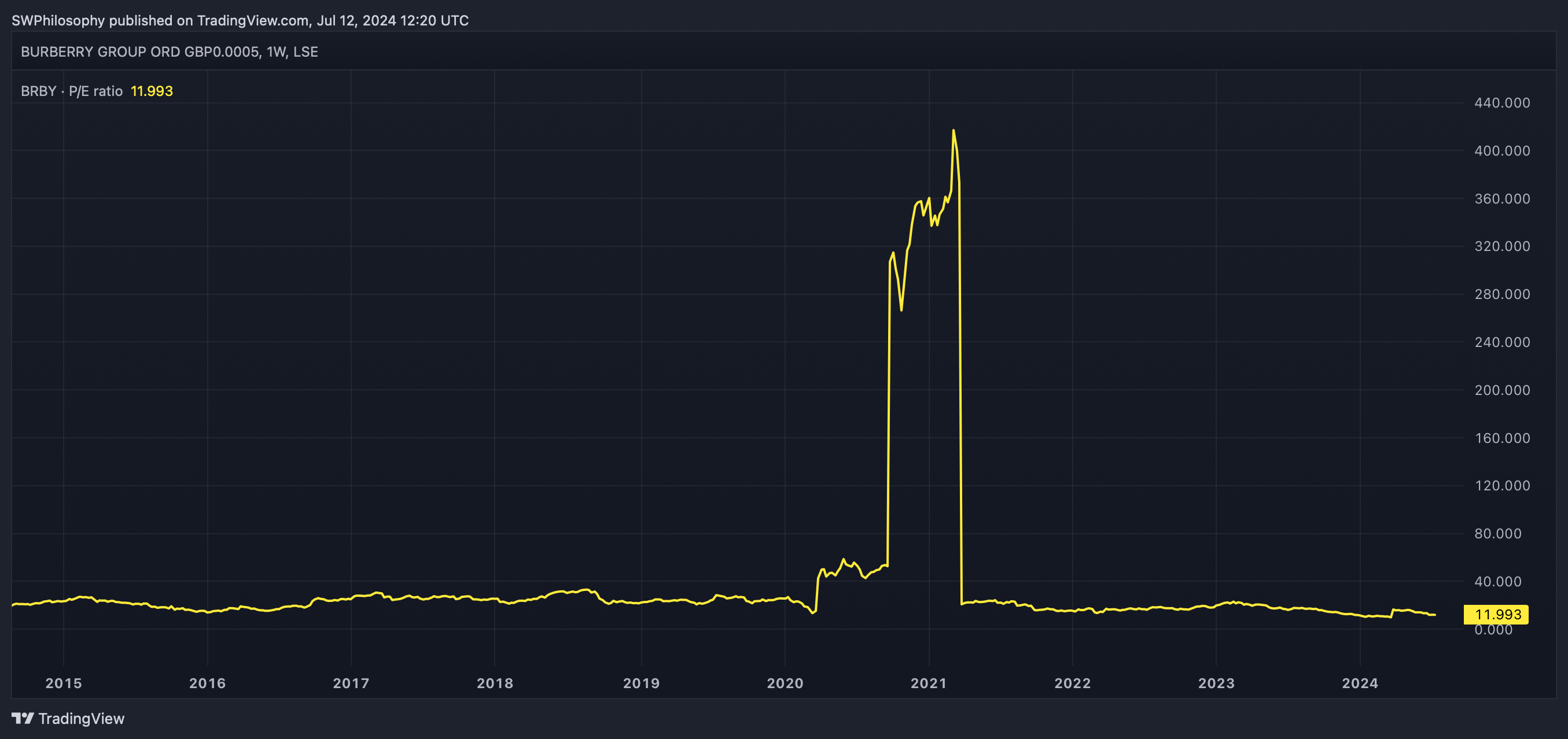 Burberry P/E ratio 2014-24