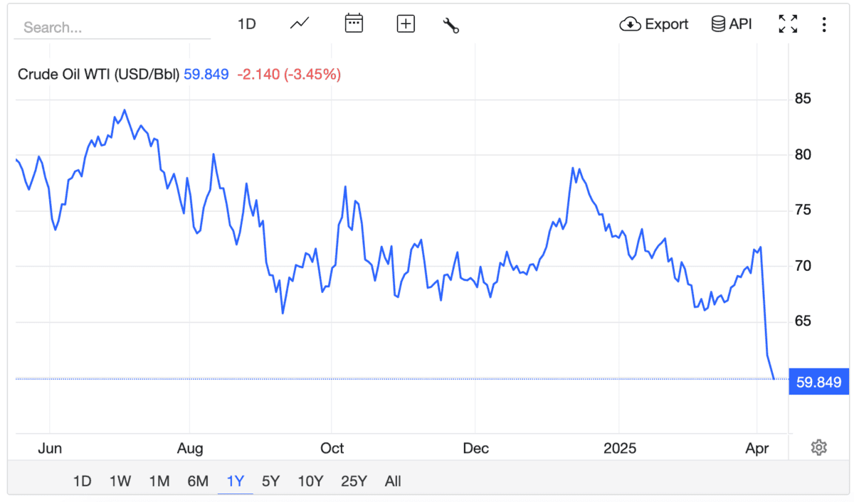 Following ‘Liberation Day’, analysts at JP Morgan estimate the chance of a global recession in 2025 to be 60%. This isn’t a positive sign for short-term oil demand.