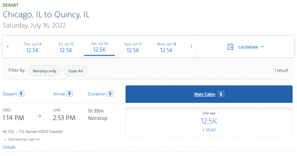 United no longer publishes an award chart. That means you can’t plan how many United miles you’ll need to save up for an award on Cape Air. But, you can transfer Chase Ultimate Rewards® points to United to top off your account when needed.