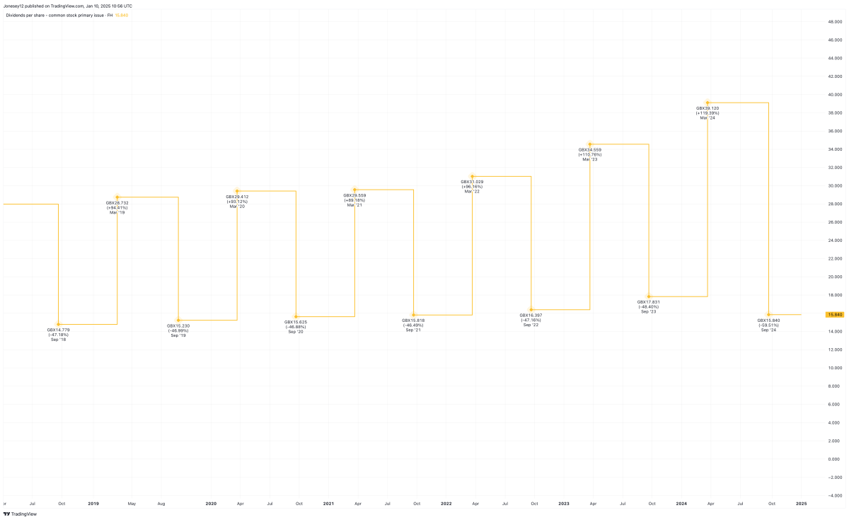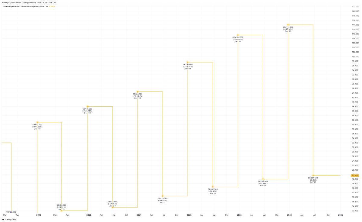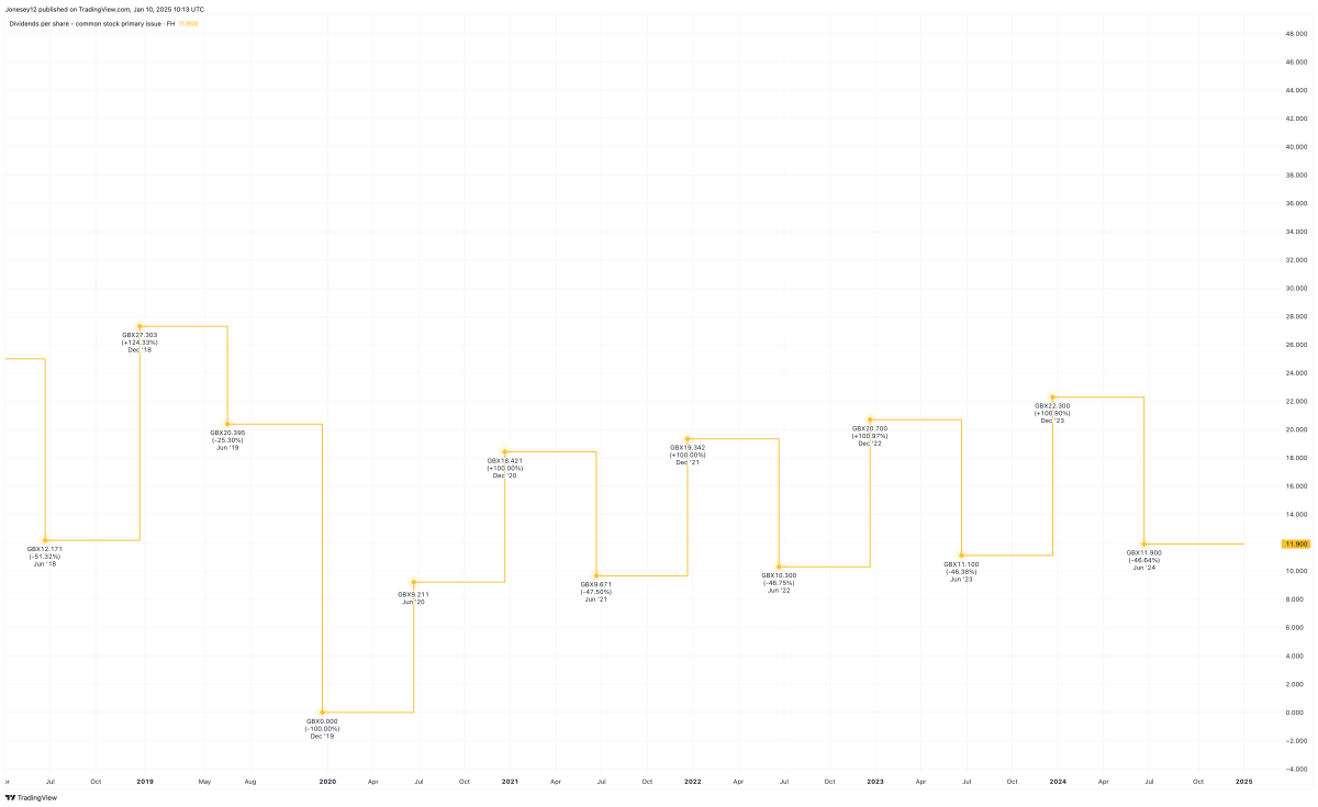 Rio Tinto’s another Footsie share expected to post a slight earnings dip in 2025. This also reflects problems in China’s commodities-hungry economy, allied with a broader slowdown of global growth.