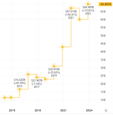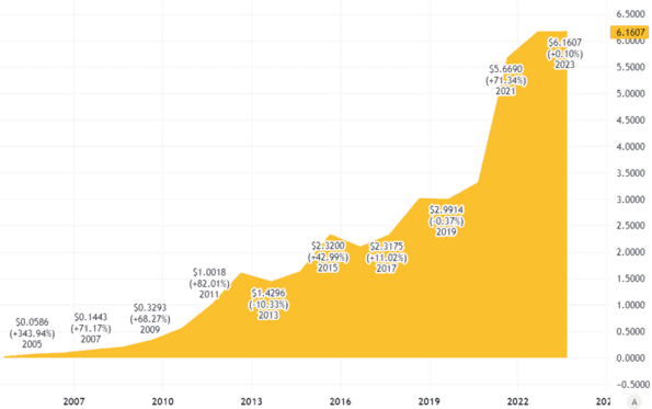 In the latest quarter, revenues grew 15% compared to the same period last year. Alphabet has an outstanding track record of revenue growth. I see no reason that cannot continue, even once it starts spending money on dividends.