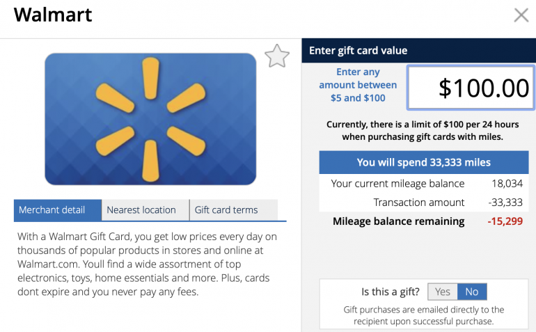 For instance, let’s say you want to redeem your miles for a $100 gift card, which will cost you 33,333 miles. Effectively, you’re spending $333 of value (100x1 cent) in United miles for a gift card worth $100.