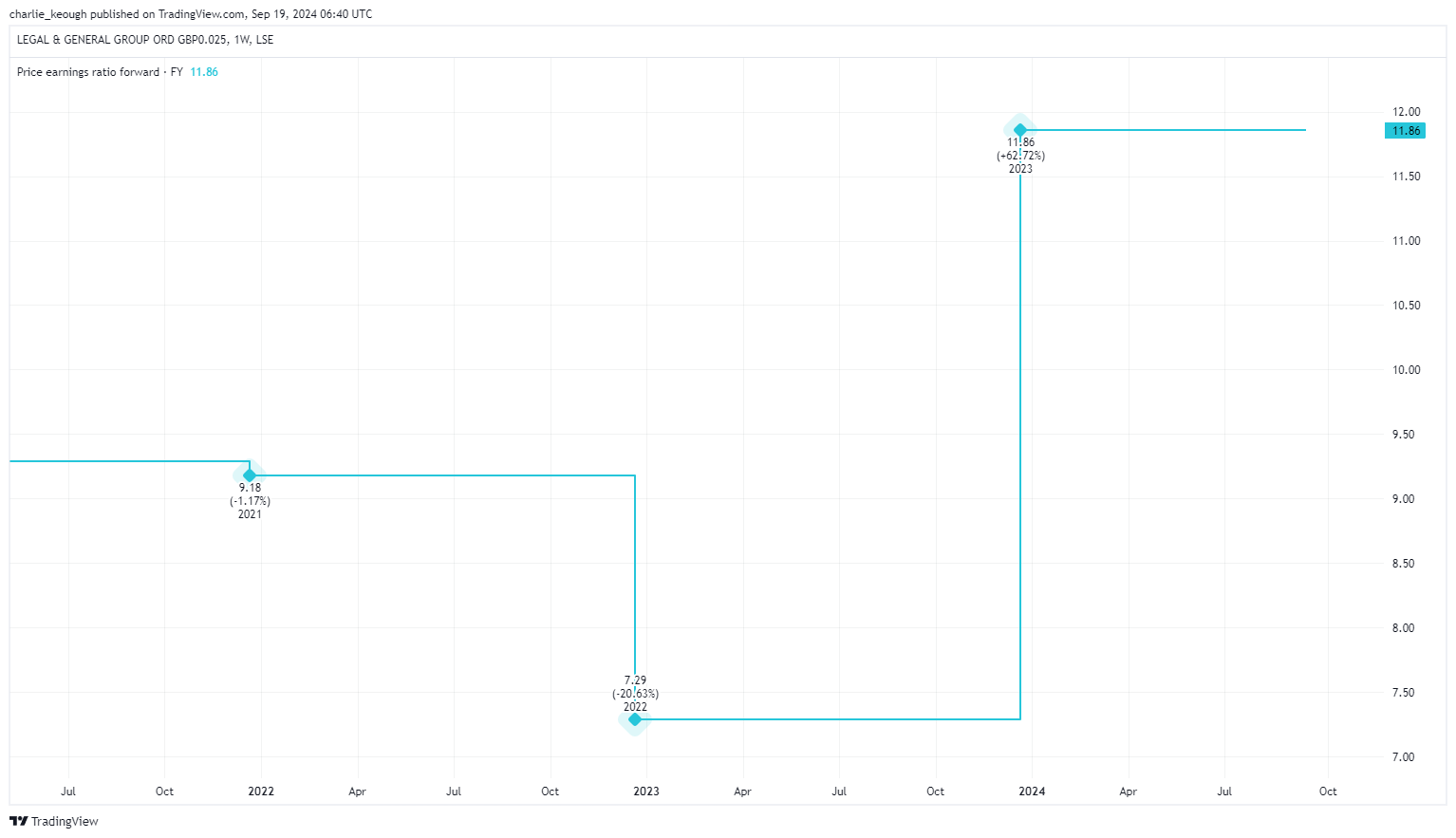 Its valuation is one. As highlighted below, the stock trades on 11.9 times forward earnings. For a company of Legal & General’s quality, I think that could be a steal.