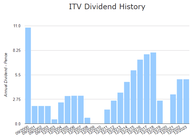 One of my main concerns regarding ITV in terms of dividends is a sketchy payment track record. When the economy is good — like between 2011 and 2018 — dividends are reliable. But when it’s not, the broadcaster is quick to make cuts and reductions.
