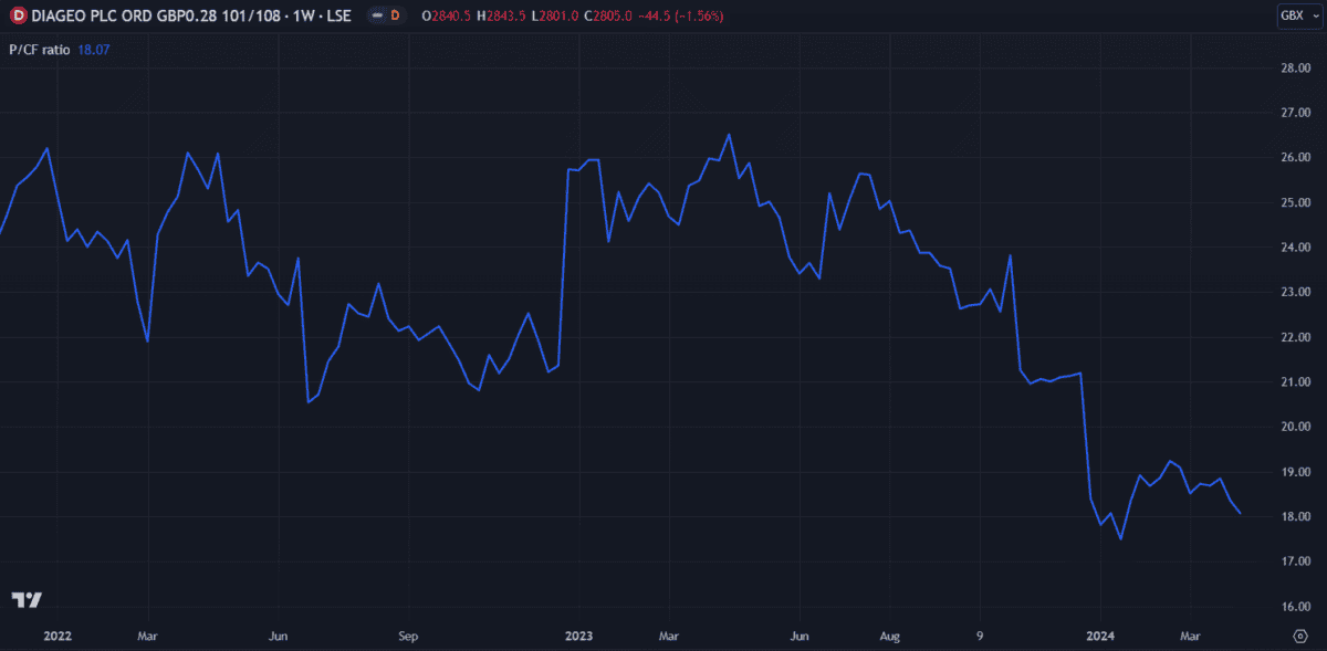 With a £78.8bn market cap and £4.26bn in earnings, Diageo has a relatively high price-to-earnings (P/E) ratio of 18.5. This is a trailing (that is, based on past figures) ratio, but with earnings expected to remain stable, the forward P/E ratio is only slightly higher.