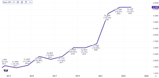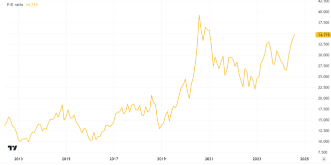 So, using its price-to-earnings ratio, Apple’s valuation now looks pricy to me – and that is if it can keep earnings per share at their current level.
