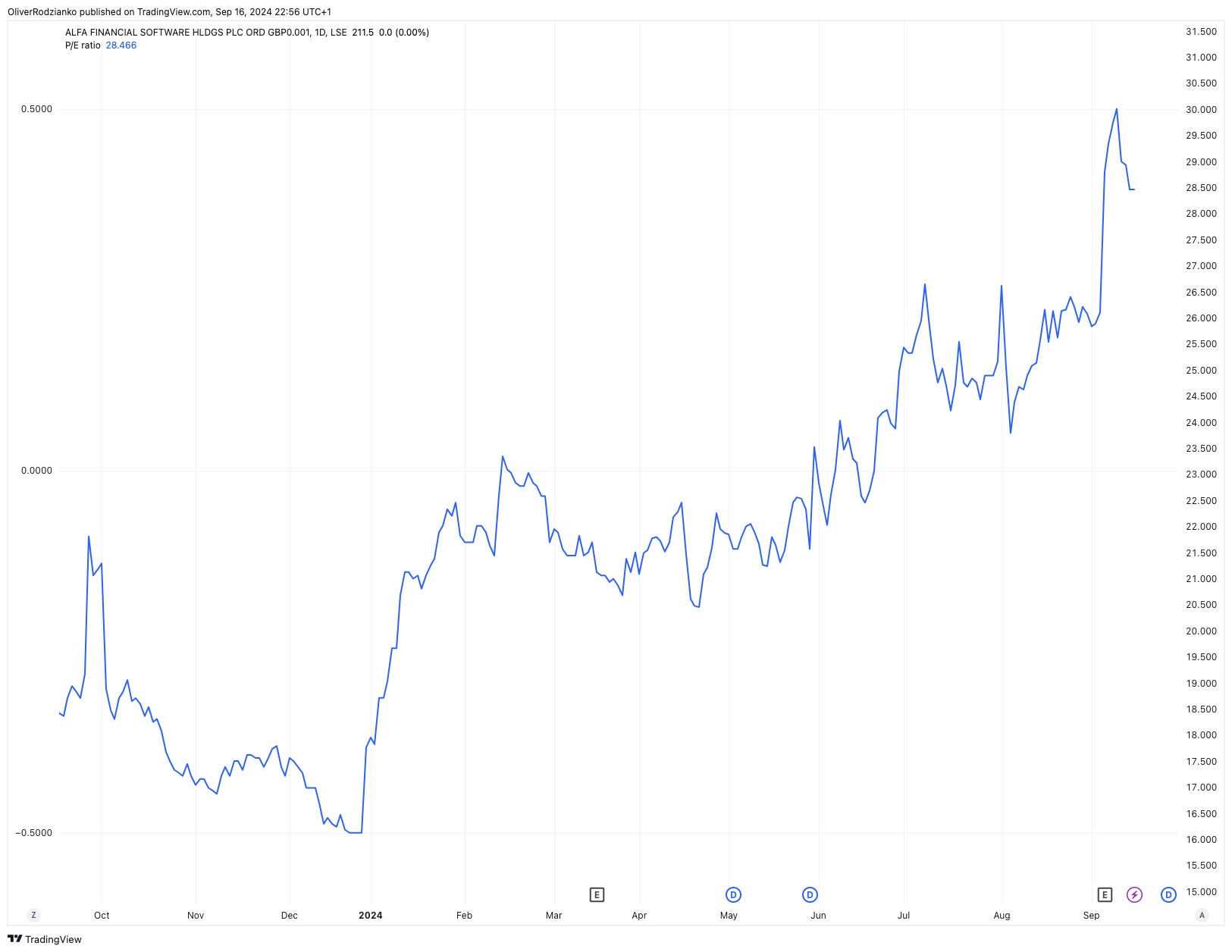 Strong growth always comes at a price. With a price-to-earnings ratio of 28, Alfa is not cheap. Its valuation has also been rising over time, meaning that the market is fully aware of the impressive expansion on offer here.