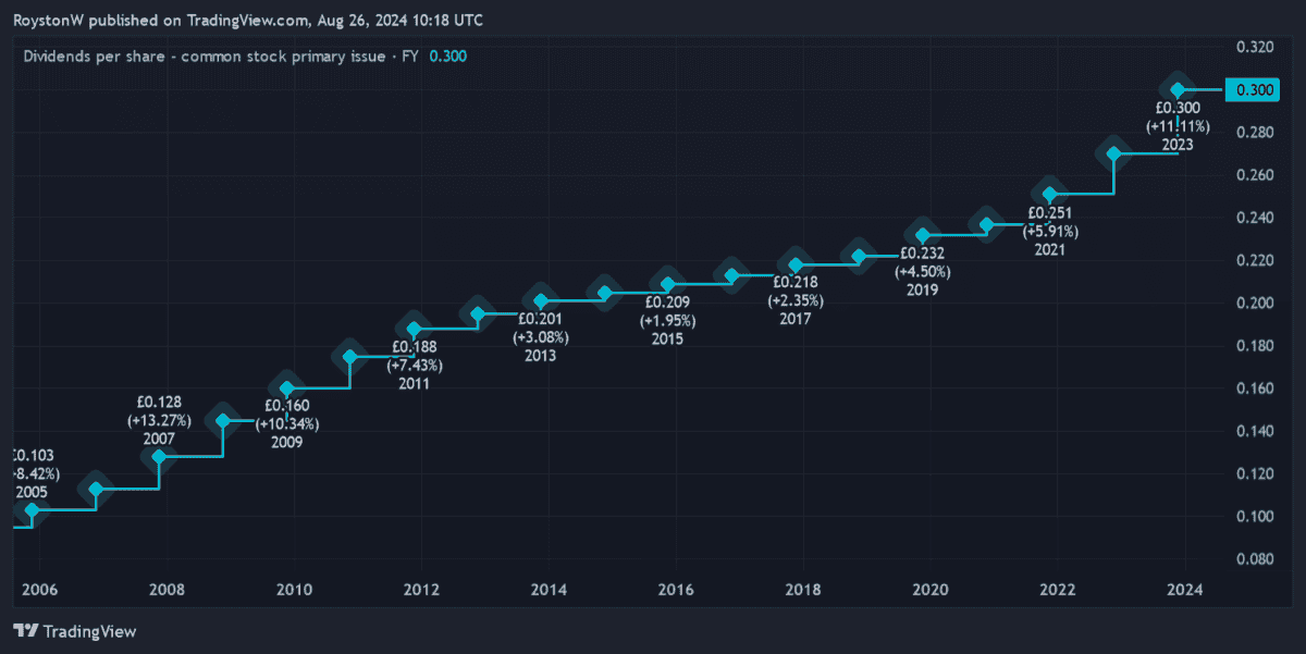 | Year | Dividend per share | Dividend growth | Dividend yield |