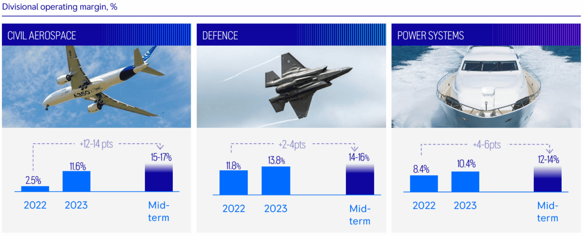 Rolls-Royce has achieved a remarkable return to health as various metrics show. Large engine flying hours — a crucial aviation yardstick — reached 88% of 2019 levels last year. The company expects this will rise to 100%-110% by the end of this year.