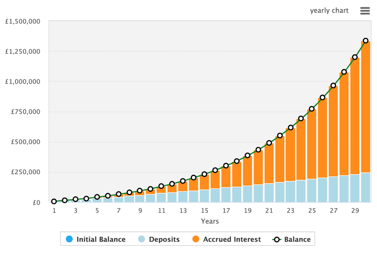 With £1.33m after 30 years, I could generate around £90,000 annually as a second income, noting the kind of dividend yields we see today.