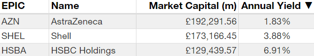 I’m considering the passive income I could make from the top three dividend stocks on the FTSE 100 by market cap: AstraZeneca, Shell and HSBC.