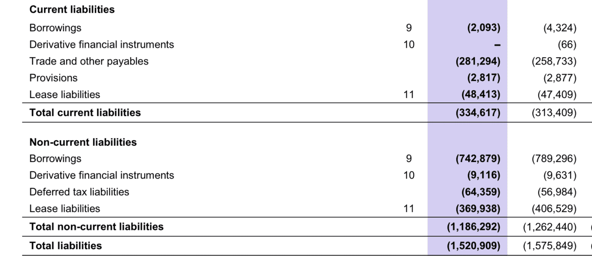J D Wetherspoon Liabilities