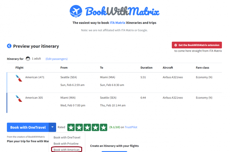 Thankfully, there’s a trick for those who want to book a specific itinerary found through ITA Matrix. Book With Matrix lets you copy-paste your ITA Matrix itinerary into its website to generate a booking link for that exact itinerary.