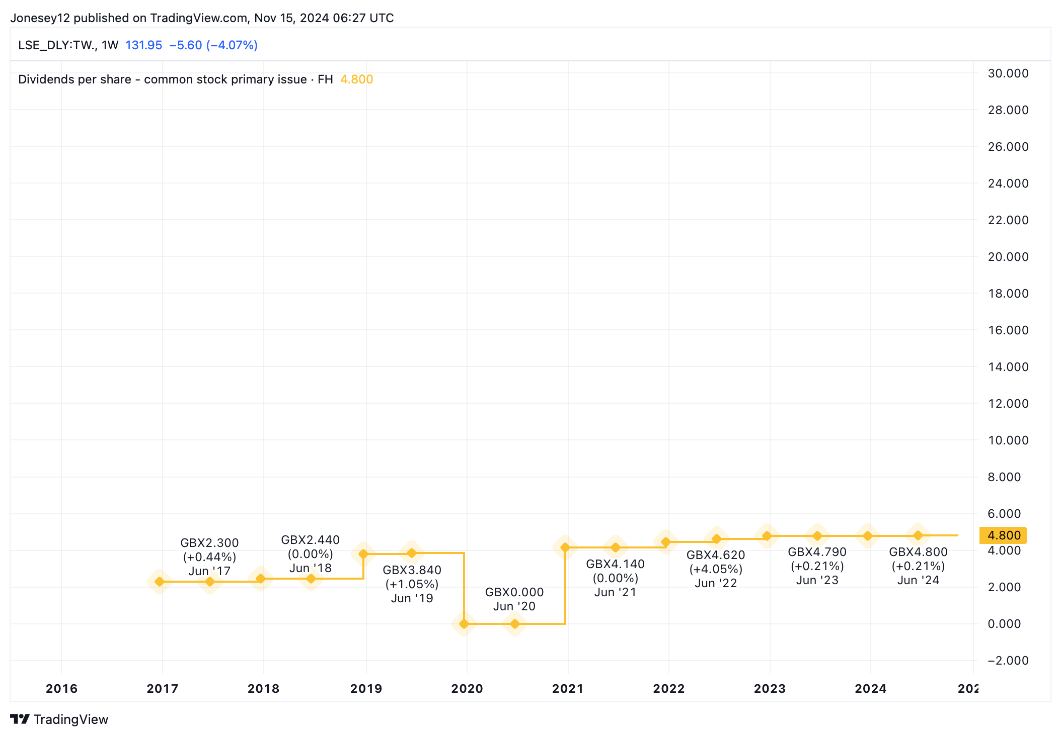 Dividend prospects looked solid too. Apart from the inevitable Covid cut in 2020, the board had made a habit of increasing it slightly every year as this chart shows.