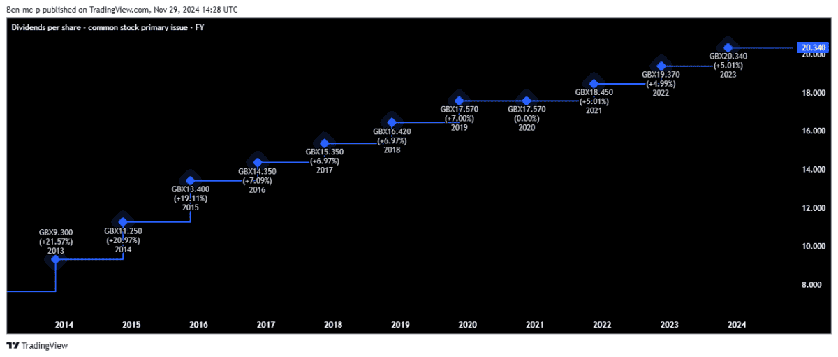 Returning to Legal & General, this stock has what I’m looking for. The insurance and asset management stalwart has decades of experience growing its dividend. I value this solid track record.