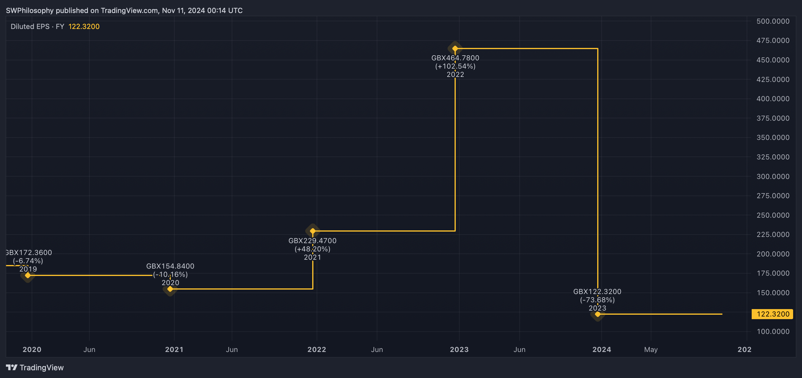 Croda International earnings per share 2019-24