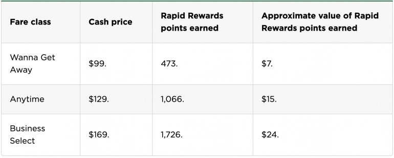 As a Rapid Rewards program member, you earn 10 points per dollar spent on your Anytime ticket. Wanna Get Away fares earn rewards at a lower rate of 6 points per dollar.
