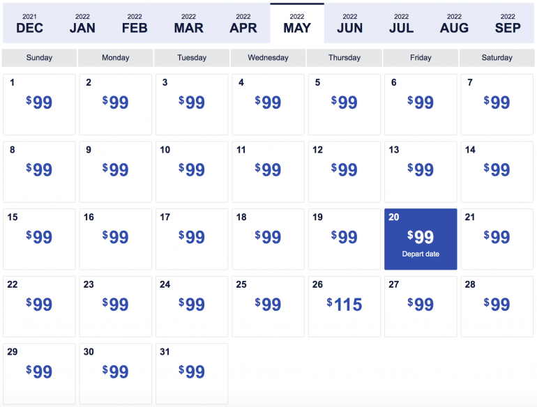 If your dates are flexible, select the “Low Fare Calendar” button and shop by flight cost.