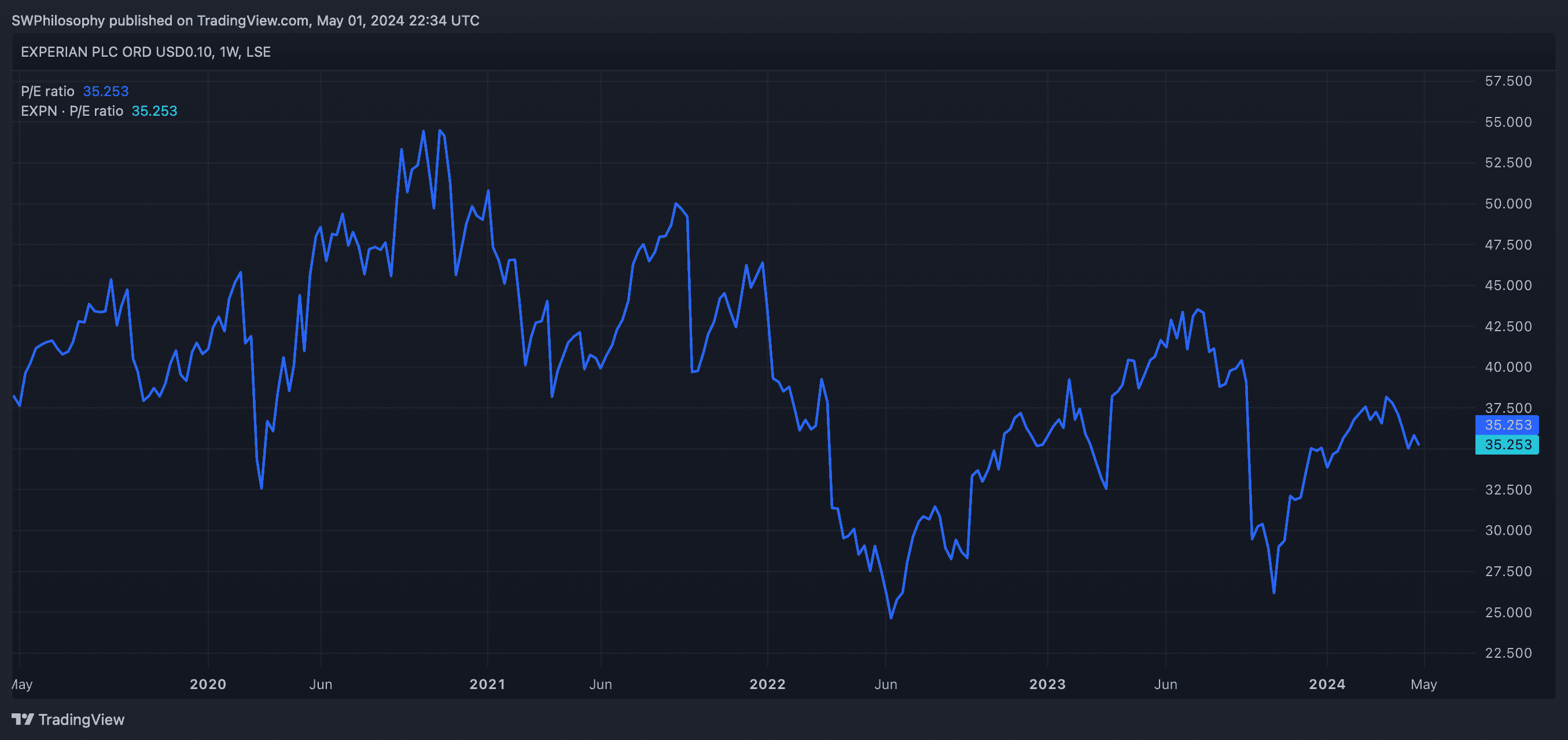 Experian P/E ratio 2019-24