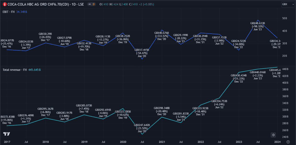 Despite its dominance, the soft drinks giant is at risk from competition as private-label brands begin capitalising on the growing demographic of health-conscious consumers. Key metrics to look at when considering growth potential are revenue and earnings before interest and tax (EBIT).
