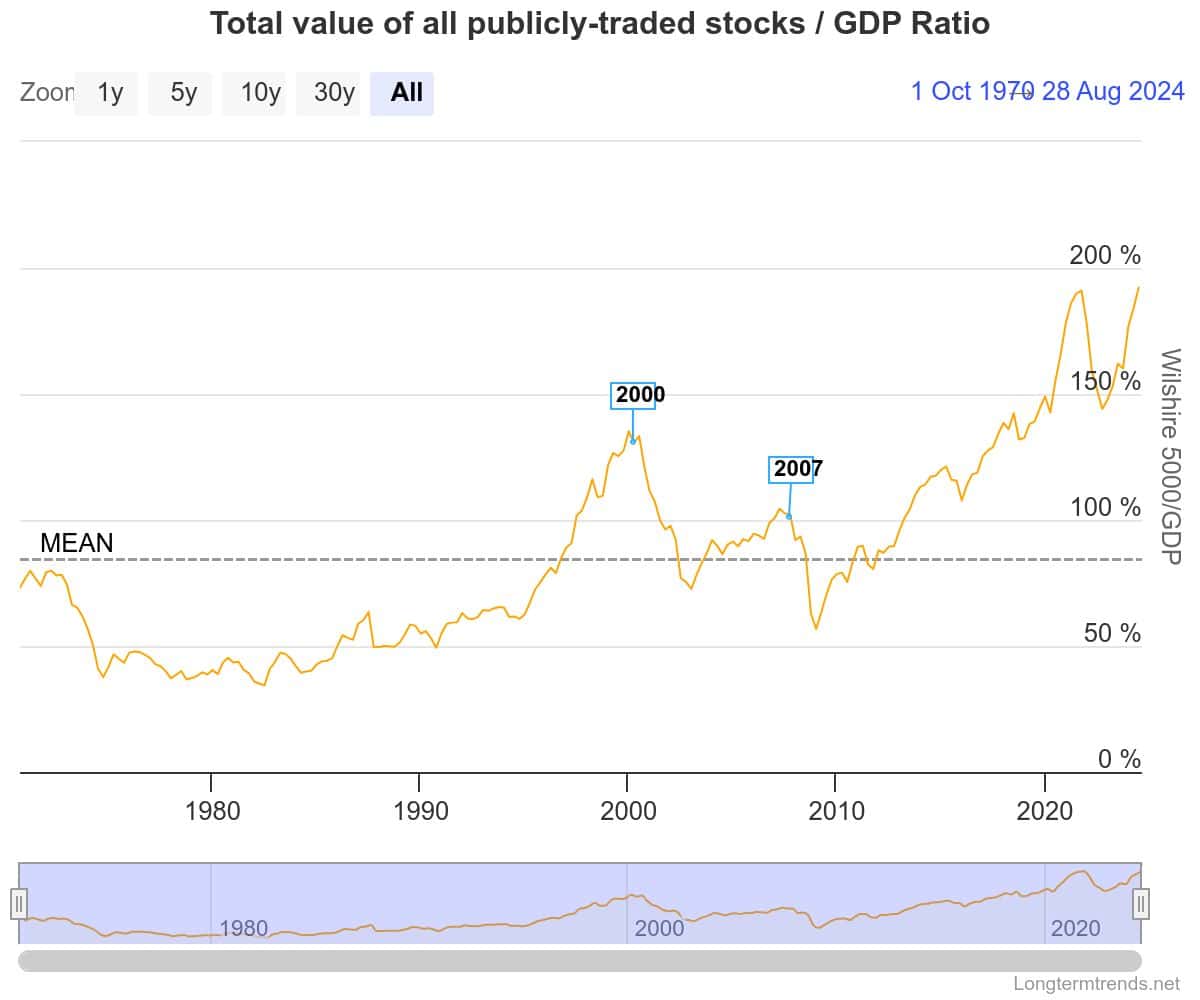 And looking back 54 years, valuations have never been higher. Similar peaks in 2000 and 2007 were followed by significant market corrections.