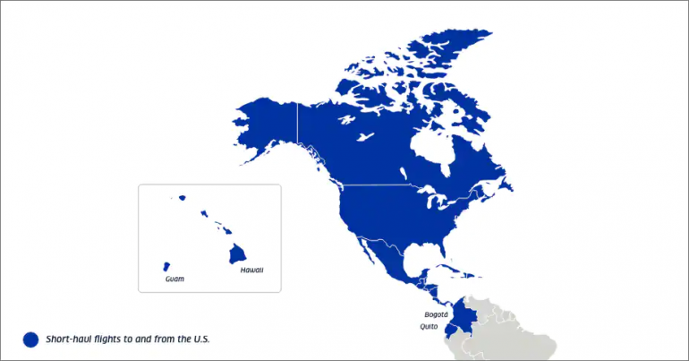 • Between the U.S. and Canada, Bogota, Central America, Caribbean, Mexico and Quito.