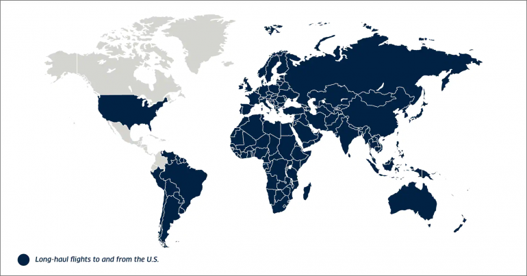 All other United flights fall under the long-haul award chart — including flights between the U.S. and: