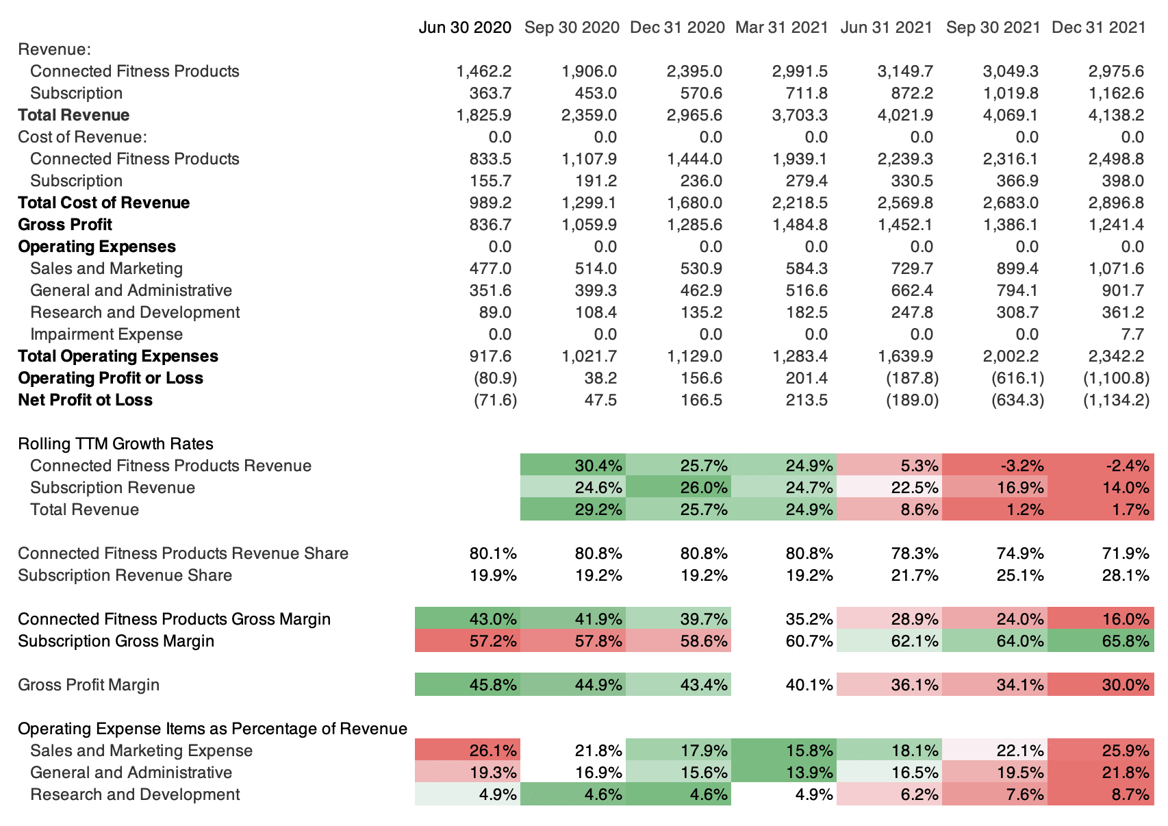 Table 2. Rolling Trailing 12-Month Income Statements for Peloton (all figures in millions of USD)