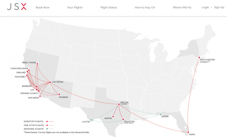 JSX is still primarily a West Coast airline focused in California, Nevada and Arizona. However, it has been incrementally expanding eastward. In 2020, JSX launched routes in and around Texas. And in November 2021, JSX added Miami flights to Dallas and Westchester County near New York City.